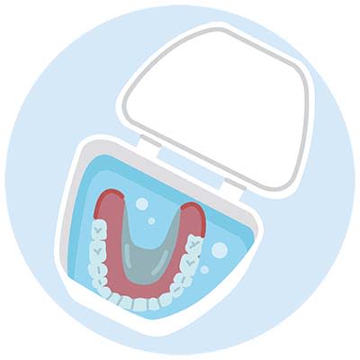 ・寝る時は、入れ歯を外して、水につけて保管しましょう。